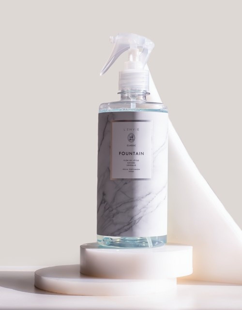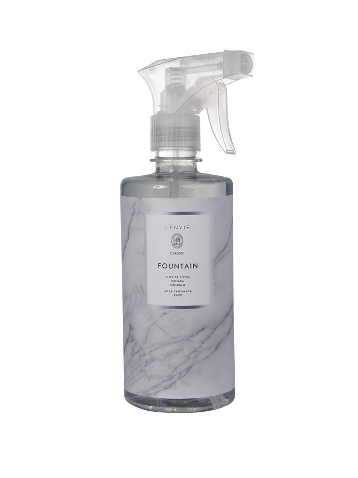 A água perfumada Fountain 500ml é indicada para perfumar tecidos, lençois e roupas. Sua fragrância é marcante, oferecendo uma perfumação maior. Com notas de saída como acorde verde e notas aquosas e corpo composto por cyclamen, rose e nymphea, apresenta notas de fundo marcadas, com musk e sândalo. Uma fragrância que surgiu do fascínio pela água, por sua complexidade e pureza, sendo ela serena ou poderosa. Criar uma fragrância inspirada em um elemento incolor, inodoro e insípido é desafiador mas através das sensações que ela desperta passa-se a fazer associações figurativas, resultando em um aroma abstrato, como uma obra. Uma fragrância autêntica com embalagem moderna e refinada.