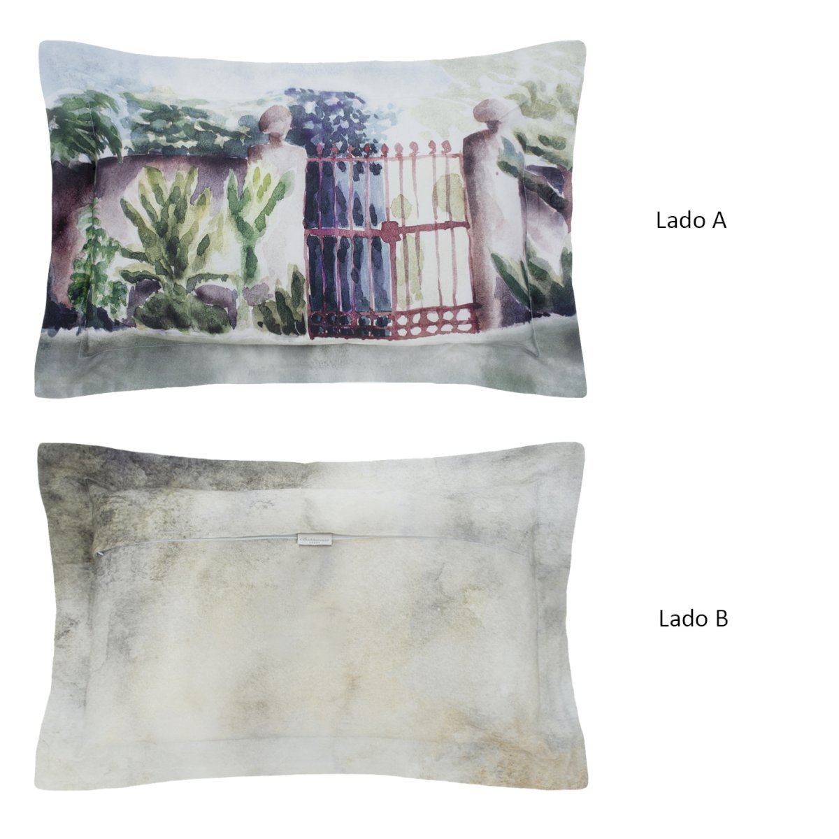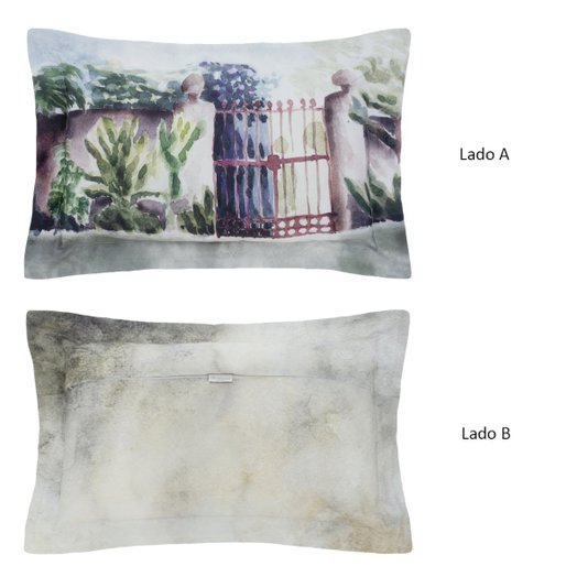Acabamento: Almofada estampada digitalmente e fechamento em zíper com lapela;