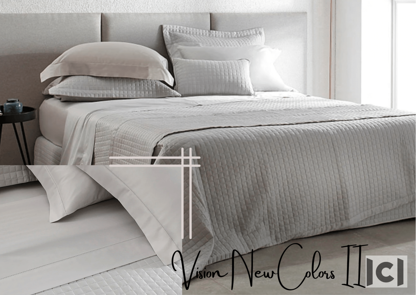 Jogo de cama, colcha, almofada, saia para colchão e peseira, são alguns dos produtos que compõem a linha Vision. Qualidade e design Buddemeyer.