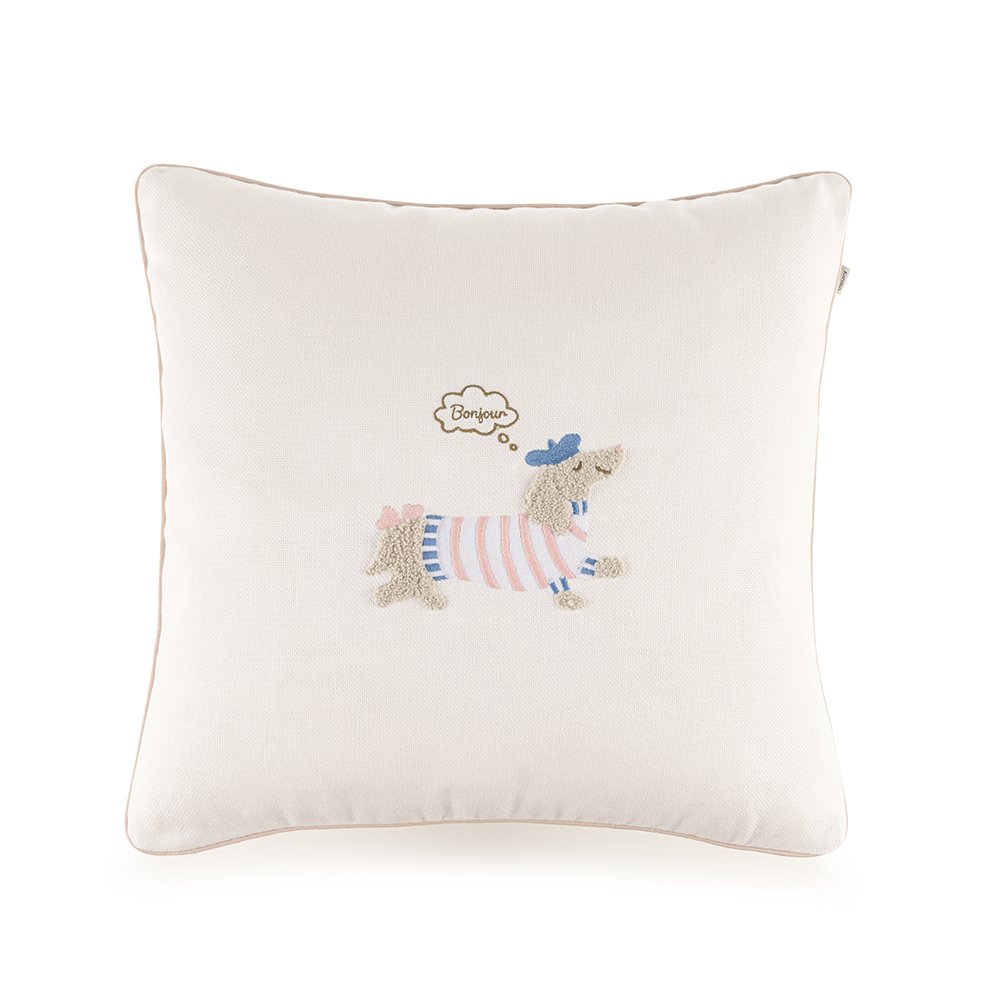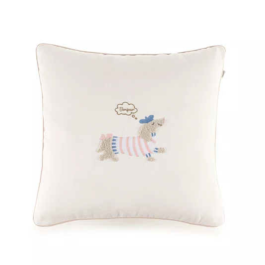 Informações do Produto: Marca Karsten Linha Jolie Material 100 algodão, 200 fios Acabamento Almofada com bordado localizado e cordonê aplicado nos 4 lado Tamanho 45x45 Instruções de Lavagem Lavar com temperatura máxima de 40°C