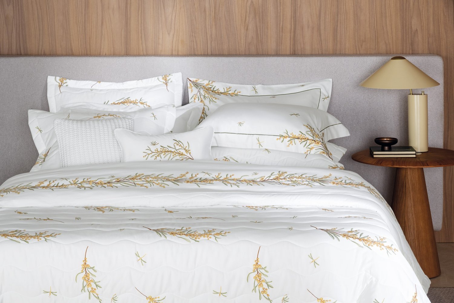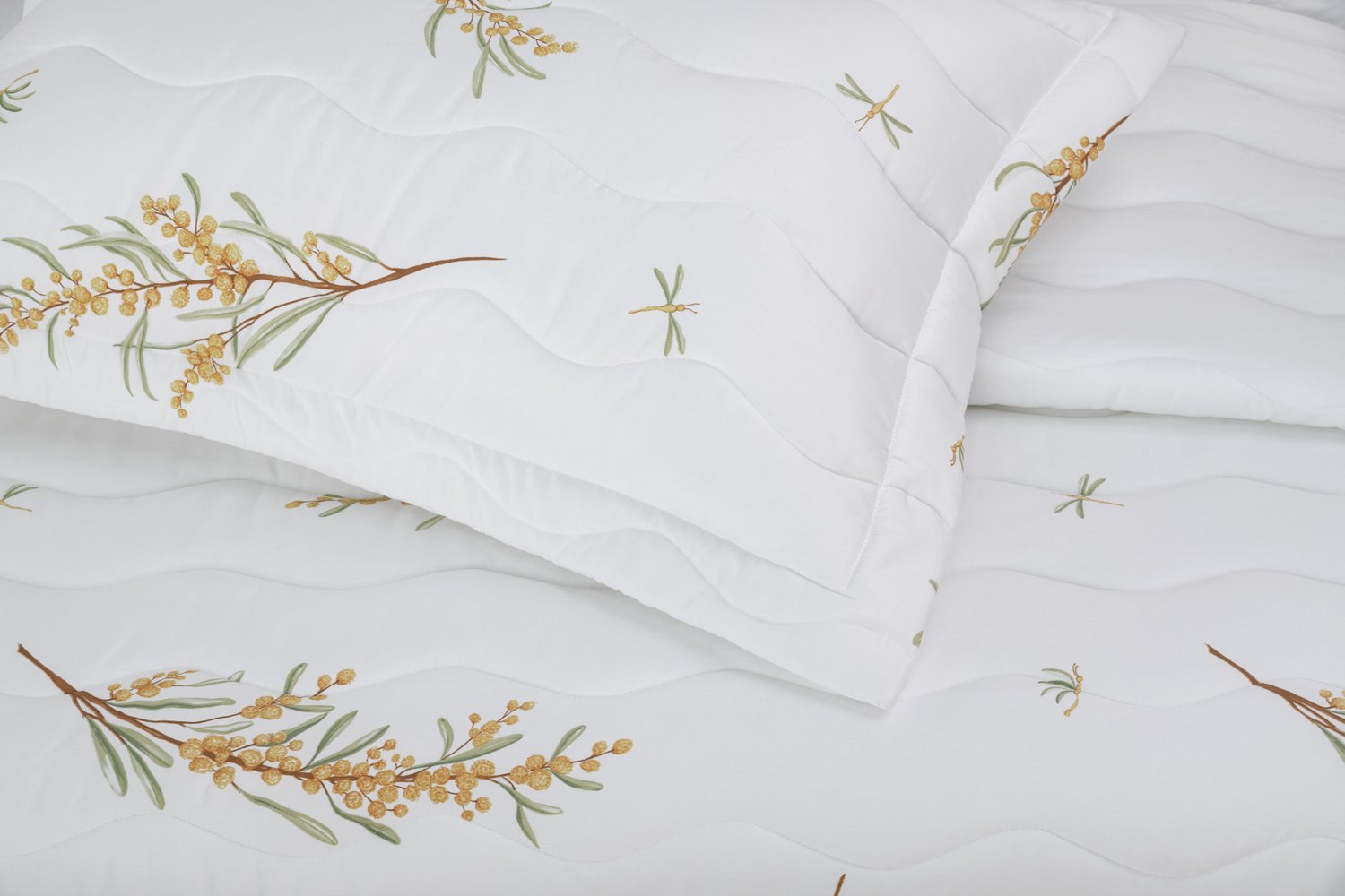 As belas árvores de mimosa que nos recebem ao entrar na Isola Bella inspiraram a criação deste jogo de cama com pinceladas em aquarela. Cada detalhe captura a essência desse charmoso lugar, trazendo uma aura de harmonia, alegria e elegância ao seu espaço. É uma oportunidade perfeita para transformar o ambiente, infundindo nele uma energia refrescante e acolhedora. Deixe-se envolver por essa combinação única de cores e sensações, e permita que sua casa se torne um refúgio de bem-estar e inspiração.