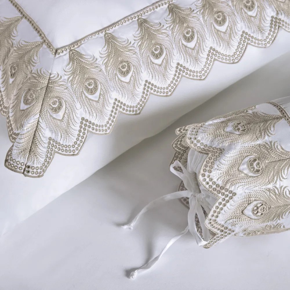 A almofada Piume é a tradução perfeita do luxo atemporal, inspirada no majestoso salão do pavão do Palazzo Davanzati. Com um design que une primor e conforto, esta peça em cetim 600 fios de 100% Algodão egípcio exibe a delicadeza de uma tira bordada aplicada, realçando sua elegância. Na clássica cor branca, o bordado em tom legno adiciona um toque sutil e refinado, elevando a decoração do seu ambiente. Suas medidas de 30cm x 40cm são ideais para compor sua cama com primor e exclusividade. Uma peça que transforma o seu espaço com conforto e beleza incomparáveis.