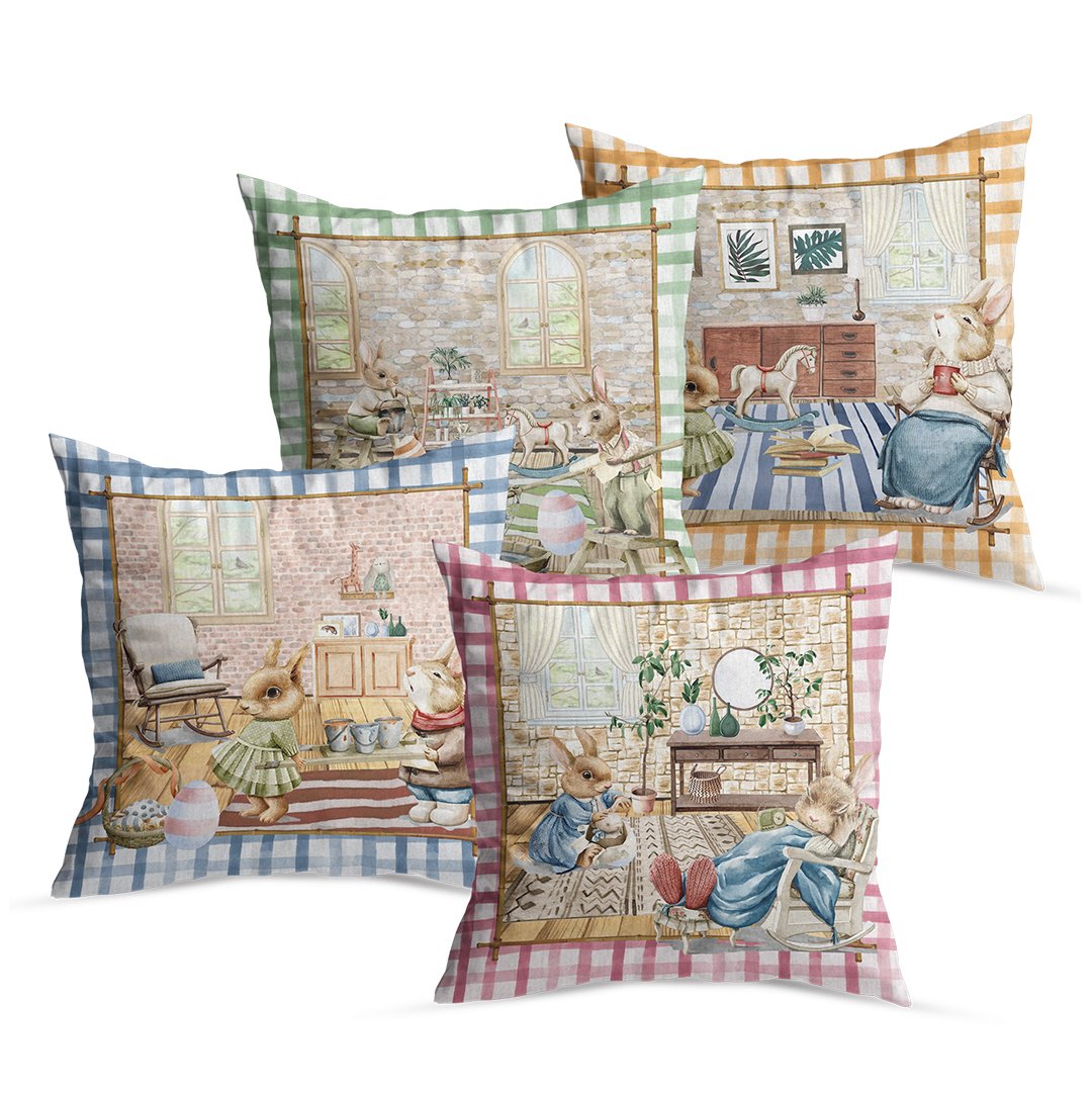 Almofada Rabbit's Family Azul Maison Blanche 50 x 50 cm