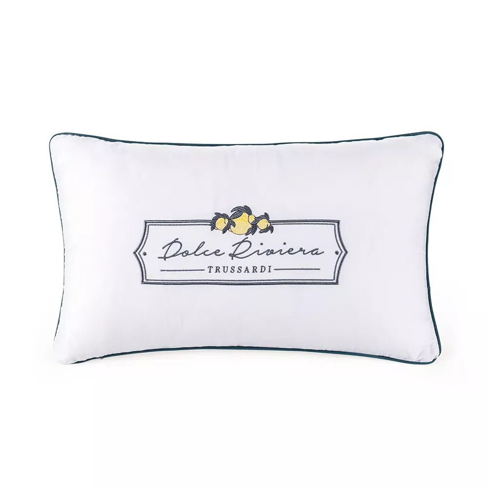A Almofada Saggiano Trussardi, confeccionada em 100% algodão egípcio, adiciona uma combinação perfeita de elegância e estilo metropolitano ao seu ambiente. Com um bordado localizado e detalhe em cordonê, a almofada se inspira nas listras clássicas em tons de verde, que evocam as cores tradicionais das janelas e portas das casas italianas incrustadas nas rochas. A estampa de limões complementa a proposta com um toque sutil de delicadeza adicionando frescor e personalidade ao espaço. Ideal para quem busca enriquecer a decoração da cama com sofisticação e um toque de originalidade que a coleção Cinque Terre carrega.