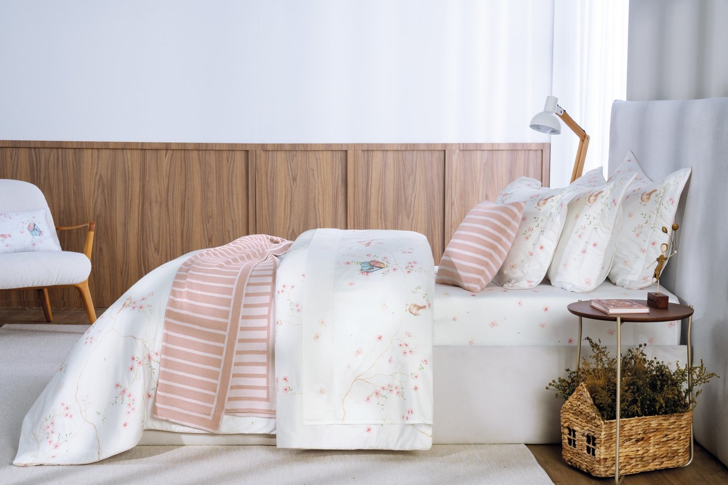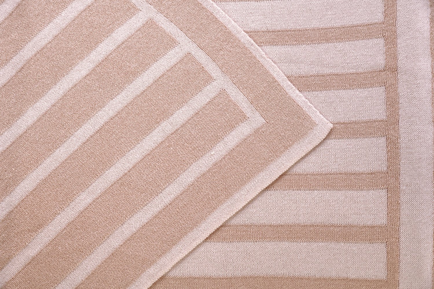 Com listras delicadas e tons suaves, a manta Simona envolve com carinho e aquece a imaginação. Feita em tricô de algodão, é uma companhia aconchegante para os momentos de descanso.
