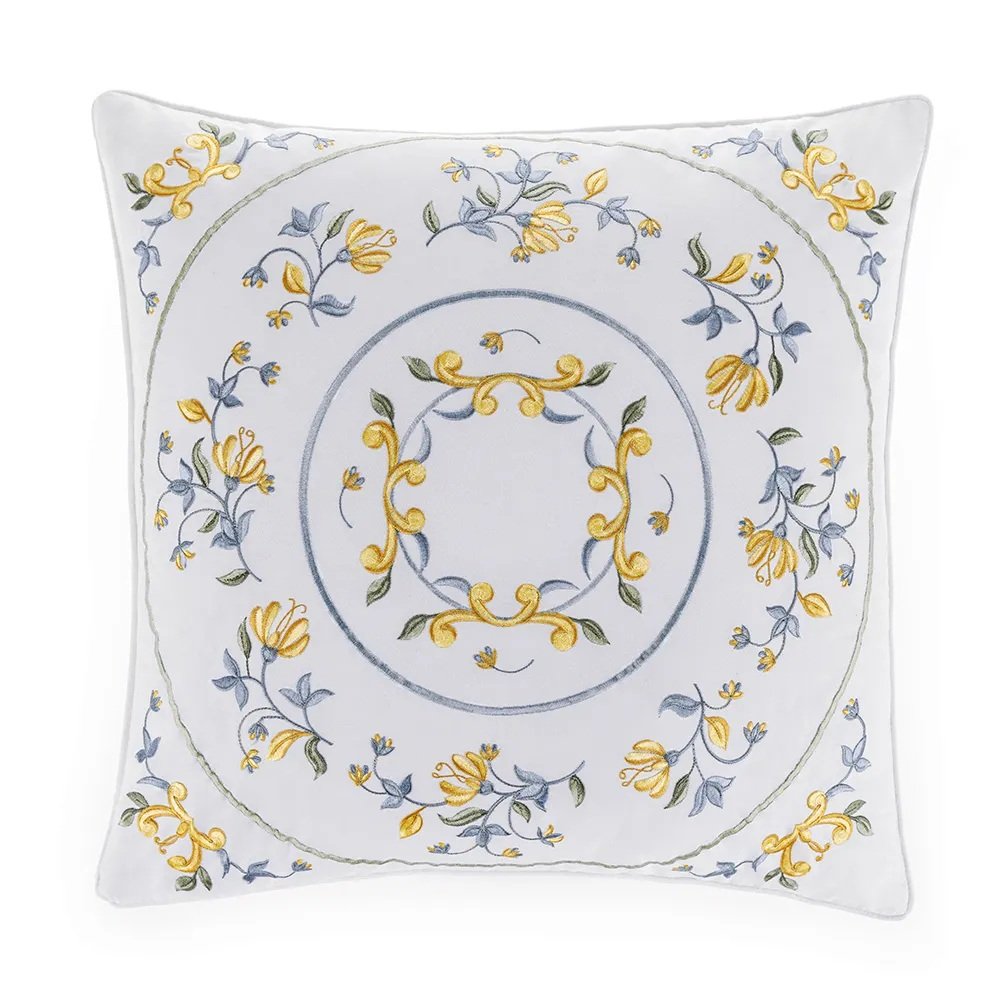 As cerâmicas sicilianas são conhecidas por suas vibrantes pinturas, que refletem a rica herança cultural e histórica da ilha. São adornadas com desenhos que incluem elementos naturais, figuras mitológicas, cenas do cotidiano e motivos geométricos, em cores intensas como azul, amarelo, verde e, em alguns casos, vermelho o que confere às peças um aspecto alegre e festivo. A estamparia digital do jogo de cama Taormina, pintada à mão em aquarela, leva não apenas o nome da cidade, mas todo o seu contexto cultural cerâmico, trazendo uma vivacidade encantadora para o dia a dia.