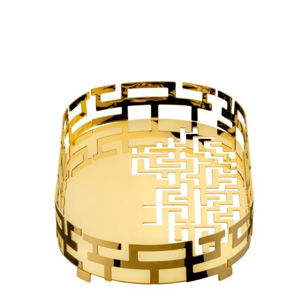 Observação: Os produtos da Riva com acabamento em nickel black, prata ou ouro 24K, recebem uma camada protetora que os tornam mais resistentes ao escurecimento e oxidação. Além disso o produto repele a água, pois a camada protetora é biologicamente segura, inerte a pele e hipoalérgica, o que garante um uso mais seguro e saudável da peça. As bandejas bar da Coleção Labirinto possuem uma placa de acrílico cristal para evitar riscos decorrentes do uso.