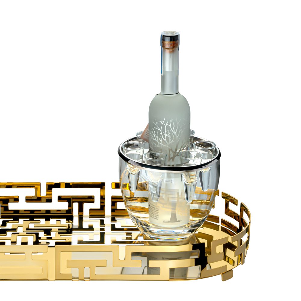 Bandeja Bar Oval Labirinto Riva Ouro 65 cm