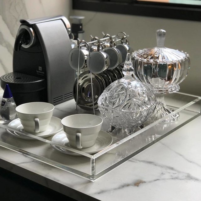 Bandeja em formato retangular e tamanho grande. Por conta de seu design liso, é ideal para diversas composições e formas de uso, como para servir e decorar.