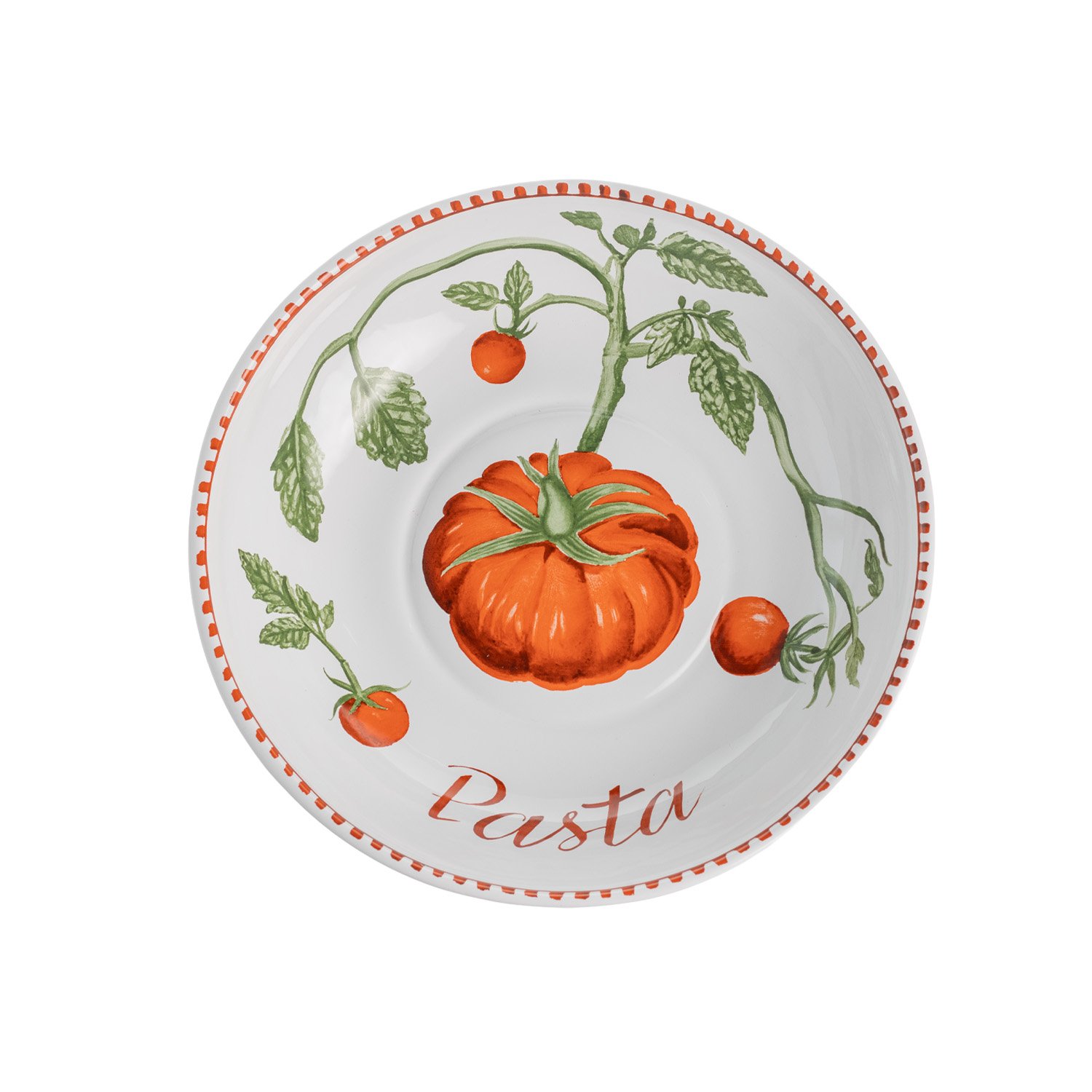 Bowl redondo de tamanho pequeno, recomendado para massa, saladas ou pequenas porções. Produzido em cerâmica artesanal com pintura manual nas cores verde e vermelho.