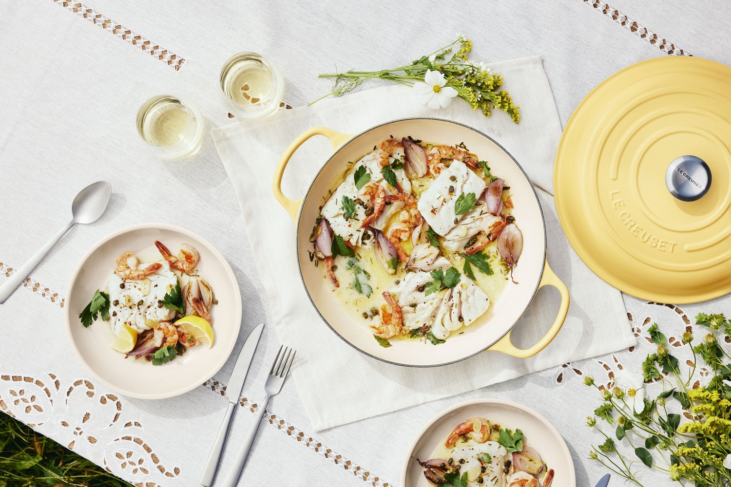 Feita com nosso lendário ferro fundido, ele tem as mesmas qualidades excepcionais de distribuição e retenção de calor para manter o sabor e manter os pratos quentes ou frios na mesa.