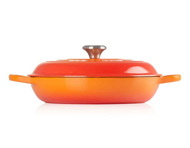 A Le Creuset produziu sua primeira panela de ferro fundido quase um século atrás e o processo de fundição original continua operando nos dias de hoje, onde 15 habilidosos artesãos inspecionam cada peça manualmente. Essa tradição e a excelente resistência do material faz com que a panela passe de geração em geração se bem cuidada.