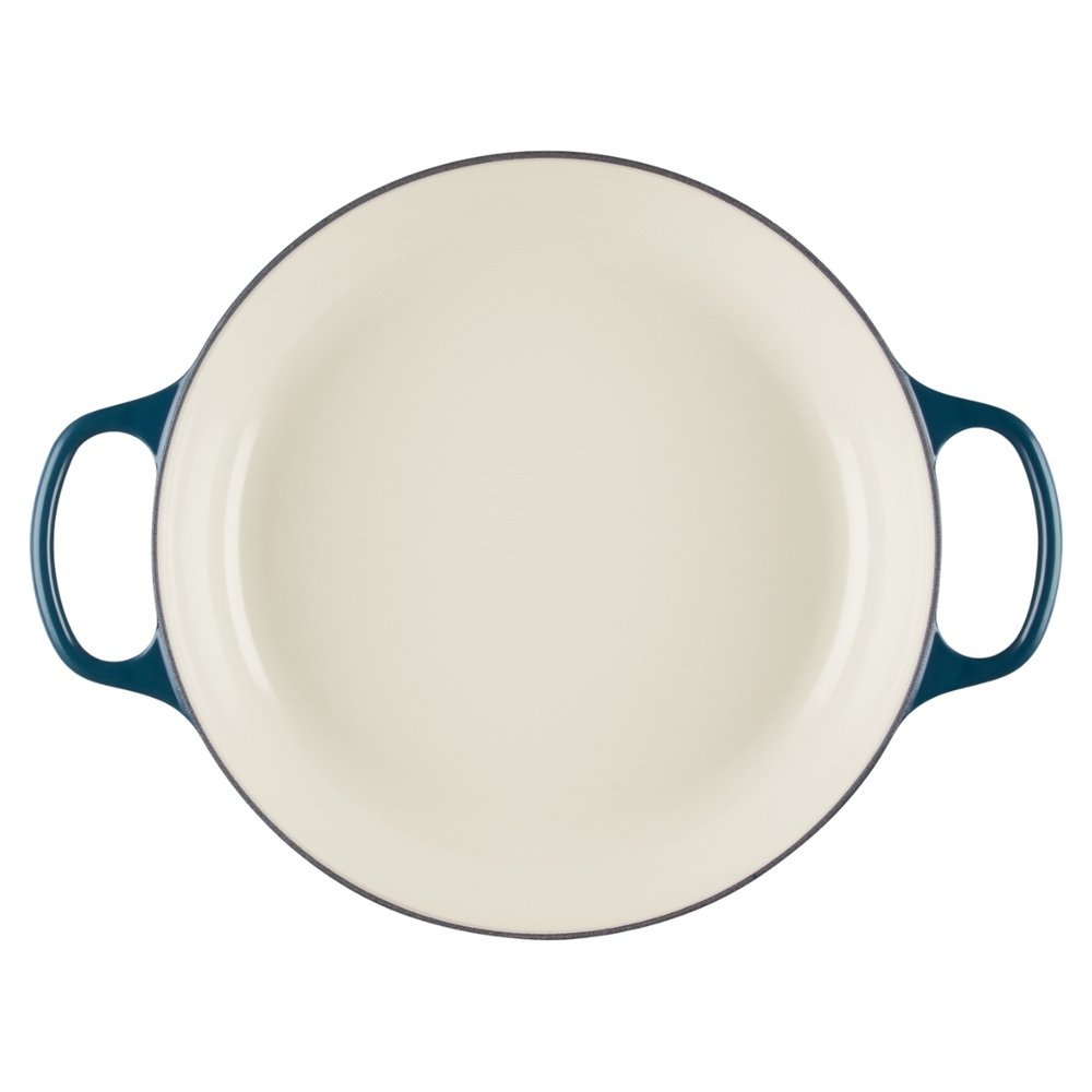 - A base produz uma crosta dourada e crocante marcada com nossos três anéis escrito Le Creuset;