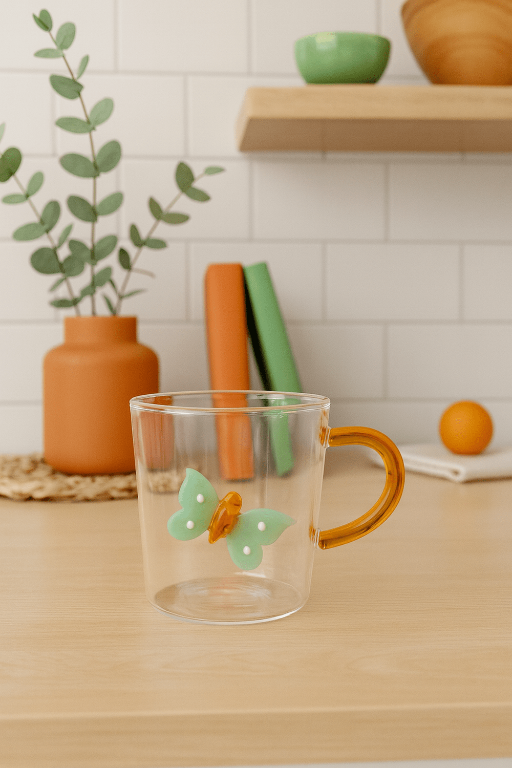 Caneca em Vidro Borossilicato Borboleta 320 ml