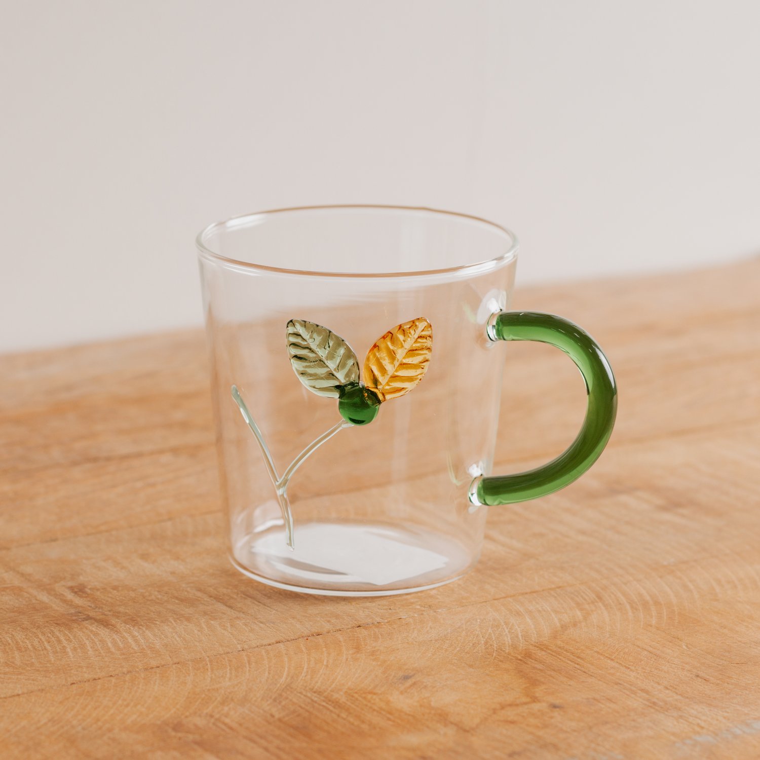 Caneca em Vidro Borossilicato Flower Verde 320 ml