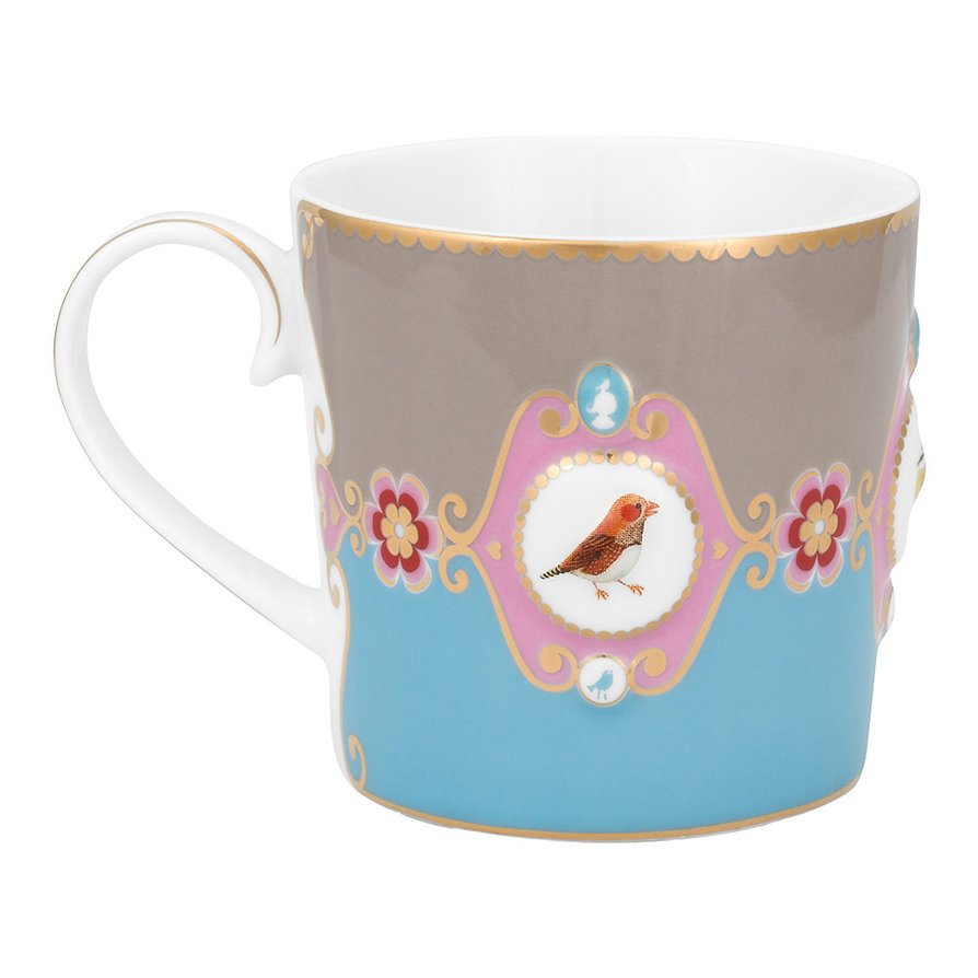 Caneca Grande Medallion Love Birds Pip Studio Azul/Caqui