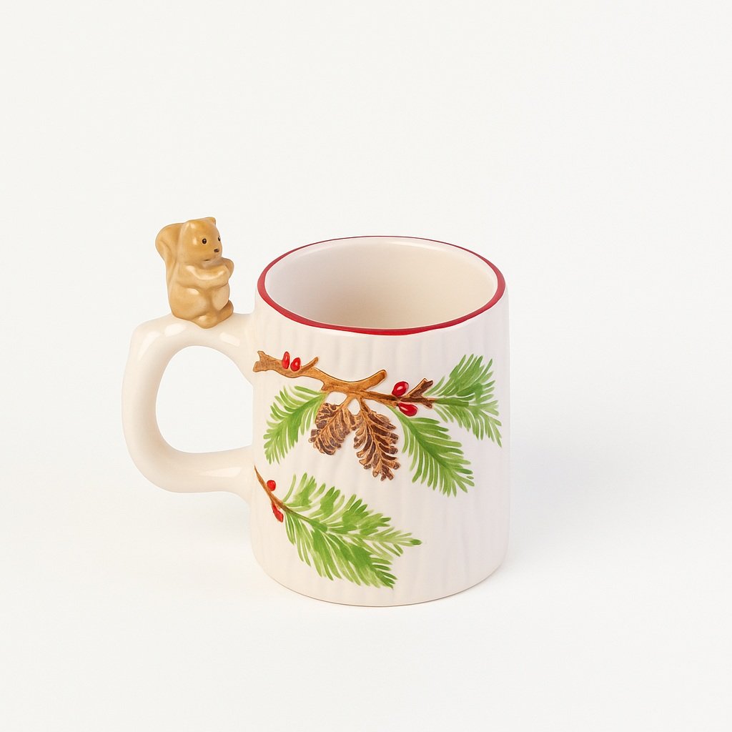 Coleção: Esquilo com Cogumelo Material: Cerâmica / Pintura Manual Acabamento: Alto Relevo Cores: Branco, Vermelho e Verde Composição: 01 Caneca Comprimento: 13 cm Largura: 8,5 cm Altura: 11 cm