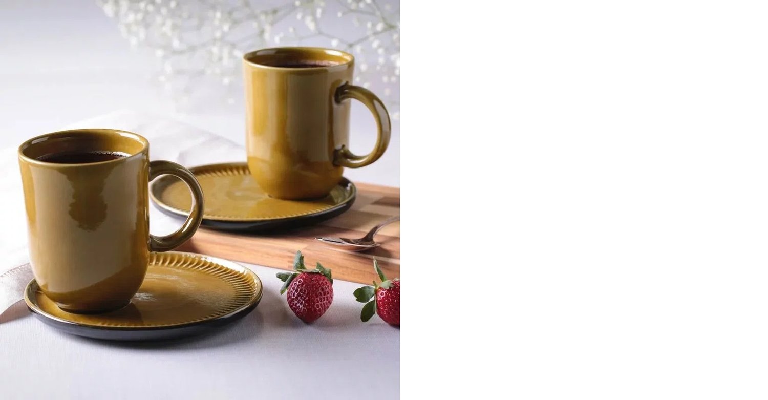 01 Caneca 330ml com pires em cerâmica Ambar Porto Brasil