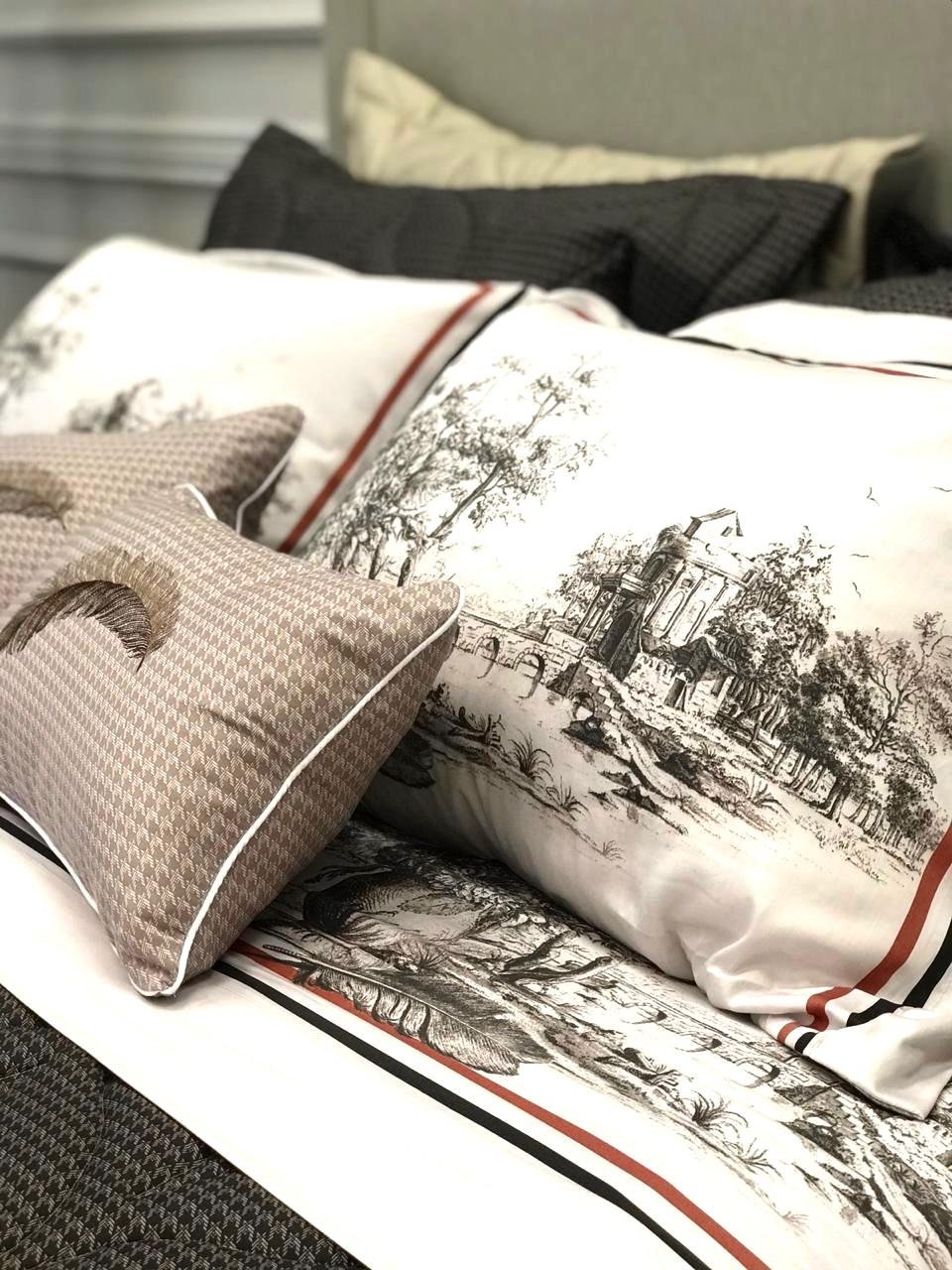 A cama Villagio faz com que a hora do descanso seja a mais esperada do dia. Seu tecido 100% Algodão Egípcio é confeccionado em cetim 300 fios. Seu acabamento é feito com tecido mercerizado e traz como diferenciais: Fronhas dimensionadas; Lençol com elástico estampado; Almofada estampada com bordado, zíper invisível e detalhe em cordonê.