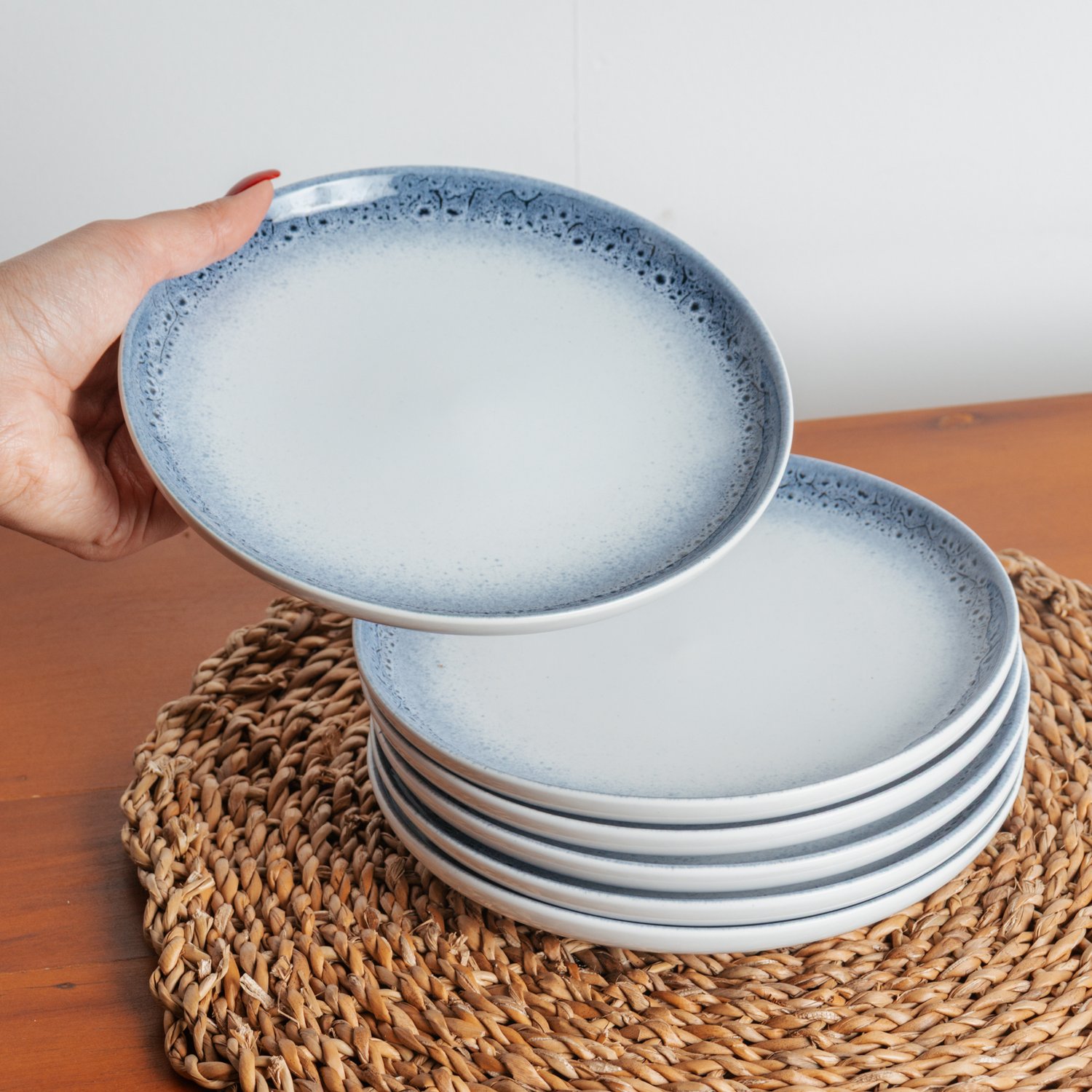 CONJUNTO 06 PRATOS PORCELANA BRANCO C/ DETALHE AZUL