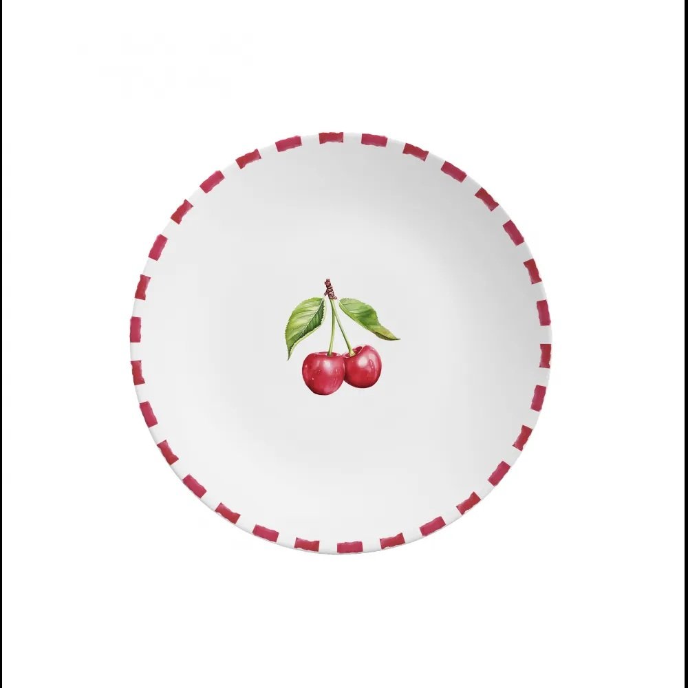Marca Alleanza Material Ceramica Feldspática Cor Branco e Vermelho Conteúdo 06 Pratos de Sobremesa Altura 2 cm Diametro 21 cm