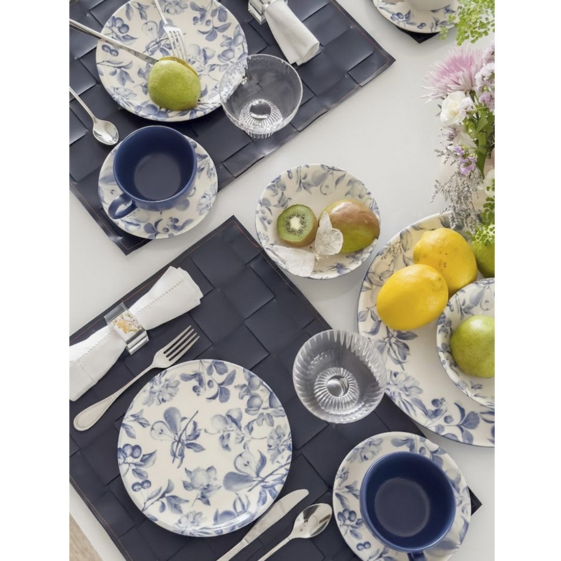 Marca Alleanza Material Ceramica Feldspática Cor Branco e Azul Conteúdo 06 Pratos de Sobremesa Altura 2 cm Diametro 21 cm