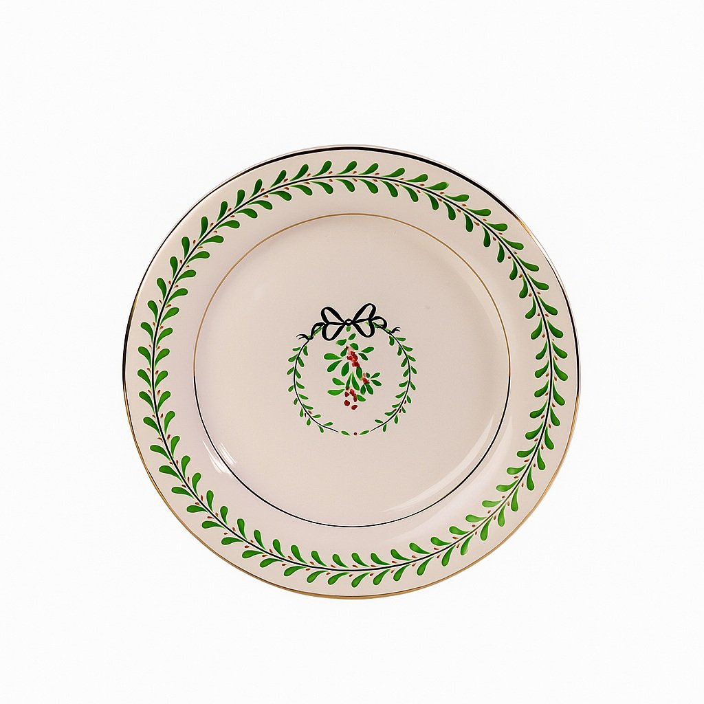 Coleção: Natal Renaissance Material: Cerâmica / Pintura Manual Acabamento: Alto Relevo Cores: Branco e Verde Composição: 06 Pratos de Sobremesa Circunferência: 20 cm Altura: 3 cm
