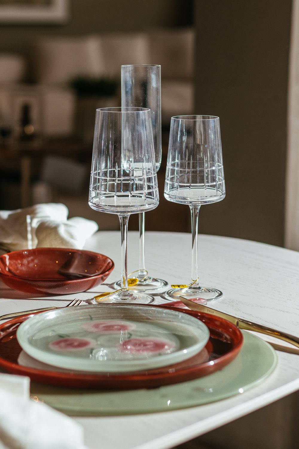 As taças da linha Amaité da Mozart Cristais, destacam-se pelo belo visual e design requintado, transmitindo um ar de sofisticação ao ambiente, além de proporcionar uma melhor apreciação da bebida, pois seu material em Cristal 24% PbO, garante a qualidade das peças, oferecendo o sabor original, sem perder as propriedades liquido.