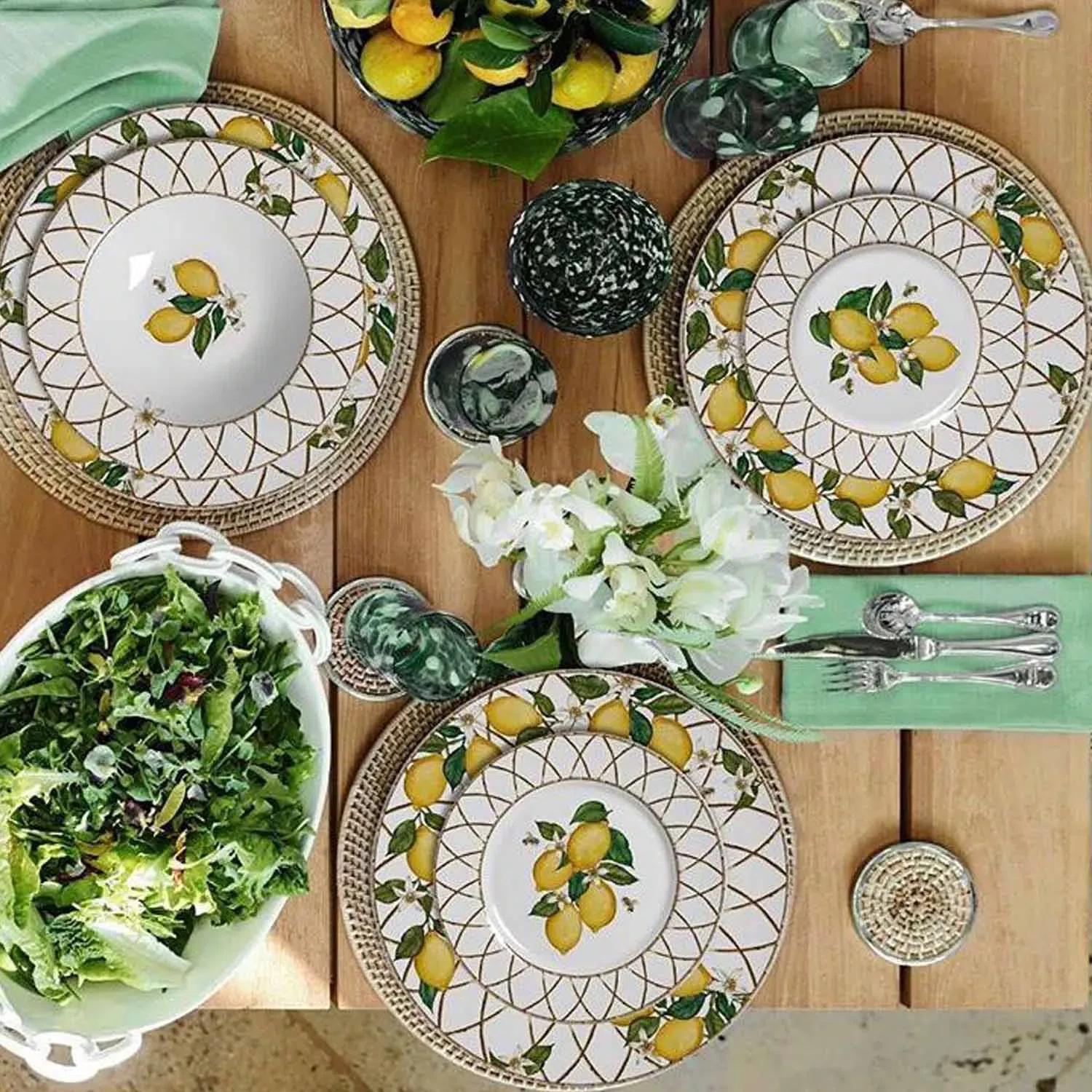 O Conjunto 06 Xícaras De Chá Com Pires Siciliano da marca Alleanza Cerâmica, da linha Siciliano, é uma celebração vibrante da culinária mediterrânea. Cada peça é adornado com detalhes frescos e alegres, apresentando desenhos de limões que evocam a essência e o sabor da Sicília. Os limões são ilustrados com cores vivas e pinceladas artísticas, que trazem um toque de luminosidade e frescor à mesa. Com um acabamento elegante e uma paleta de cores que combina com a temática cítrica, esses pratos são perfeitos para servir sobremesas com um toque de sofisticação e um espírito refrescante. Ideal para adicionar um charme mediterrâneo à sua mesa, este conjunto é tanto funcional quanto visualmente encantador