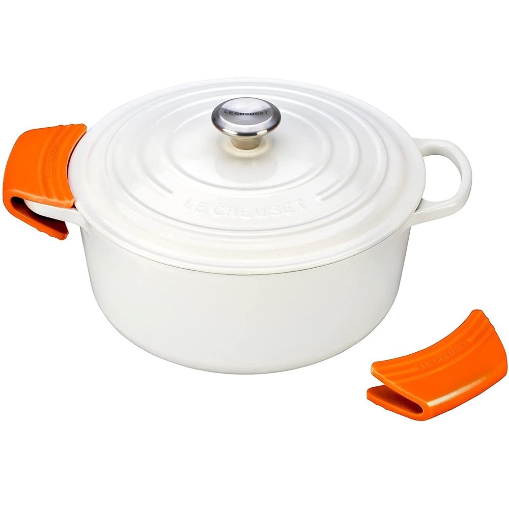 Informações do Produto Marca Le Creuset Material Silicone Cor Laranja Conteúdo 02 Pegadores de Silicone Quantidade de Peças 2 Peças Medidas 12x6x3,5cm Modo de lavagem Lava Louças, Lavagem a Mão. Cuidados Utilizar detergente neutro e esponja macia. Secar bem.