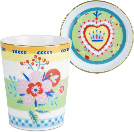 Copo com Pires em Porcelana Bouquet de Flores Mamma Mia Baci Milano