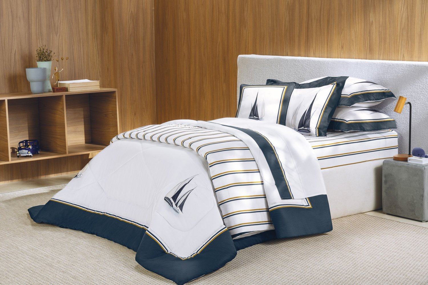 Os veleiros que navegam pelas águas calmas e ensolaradas de Siracusa embalam o sono dos pequenos, acompanhados pela tranquilidade da brisa leve. A cama Veleiro é um convite a criar lembranças de afeto com seu filho, onde aventuras imaginárias tornam os momentos especiais e inesquecíveis.