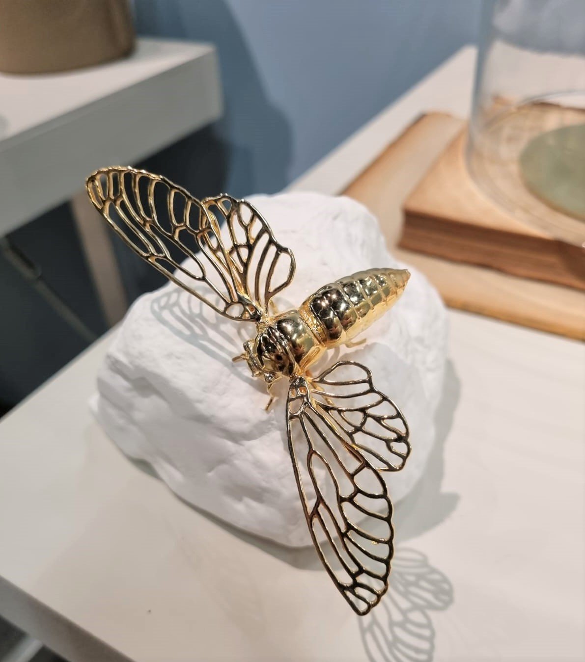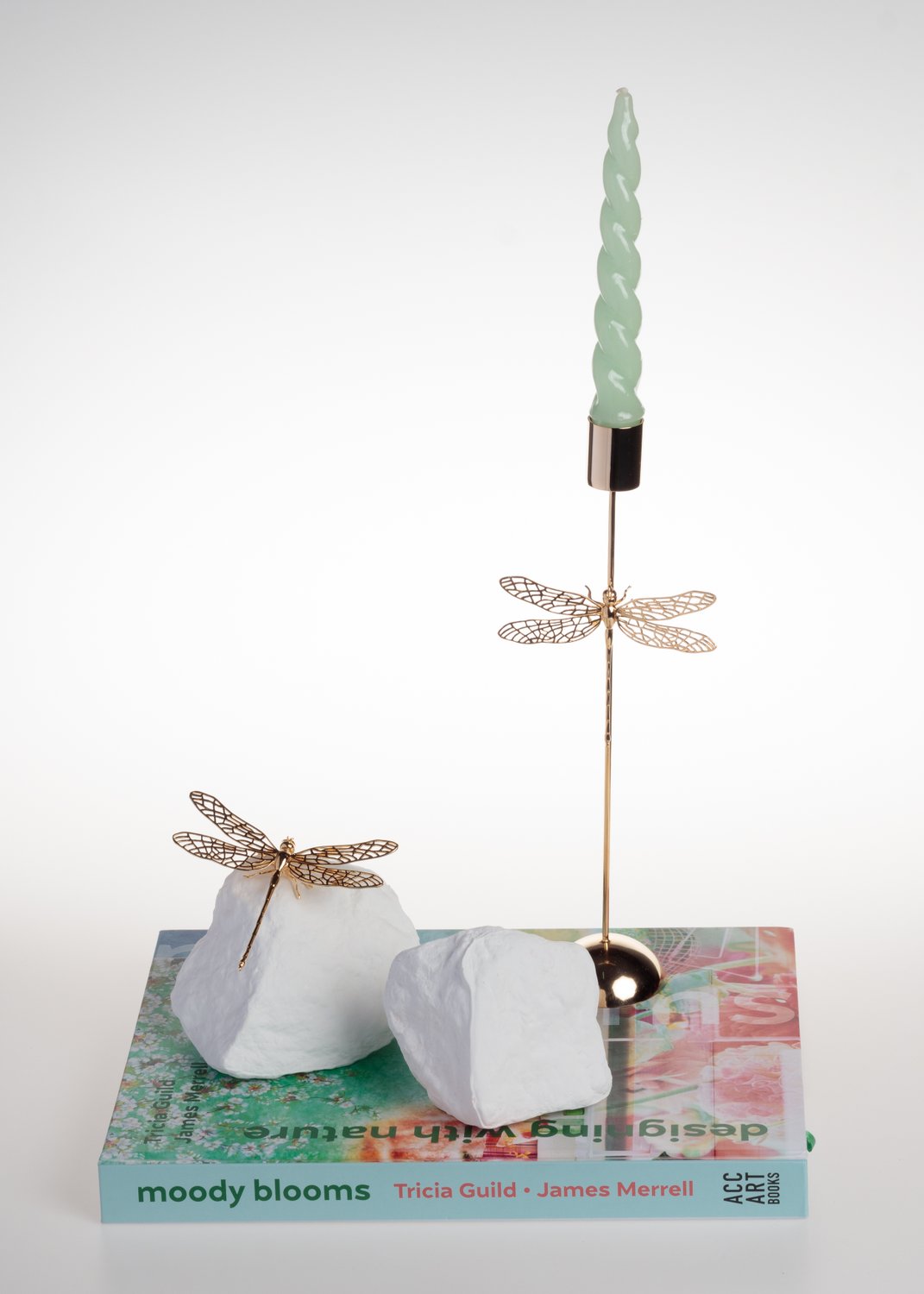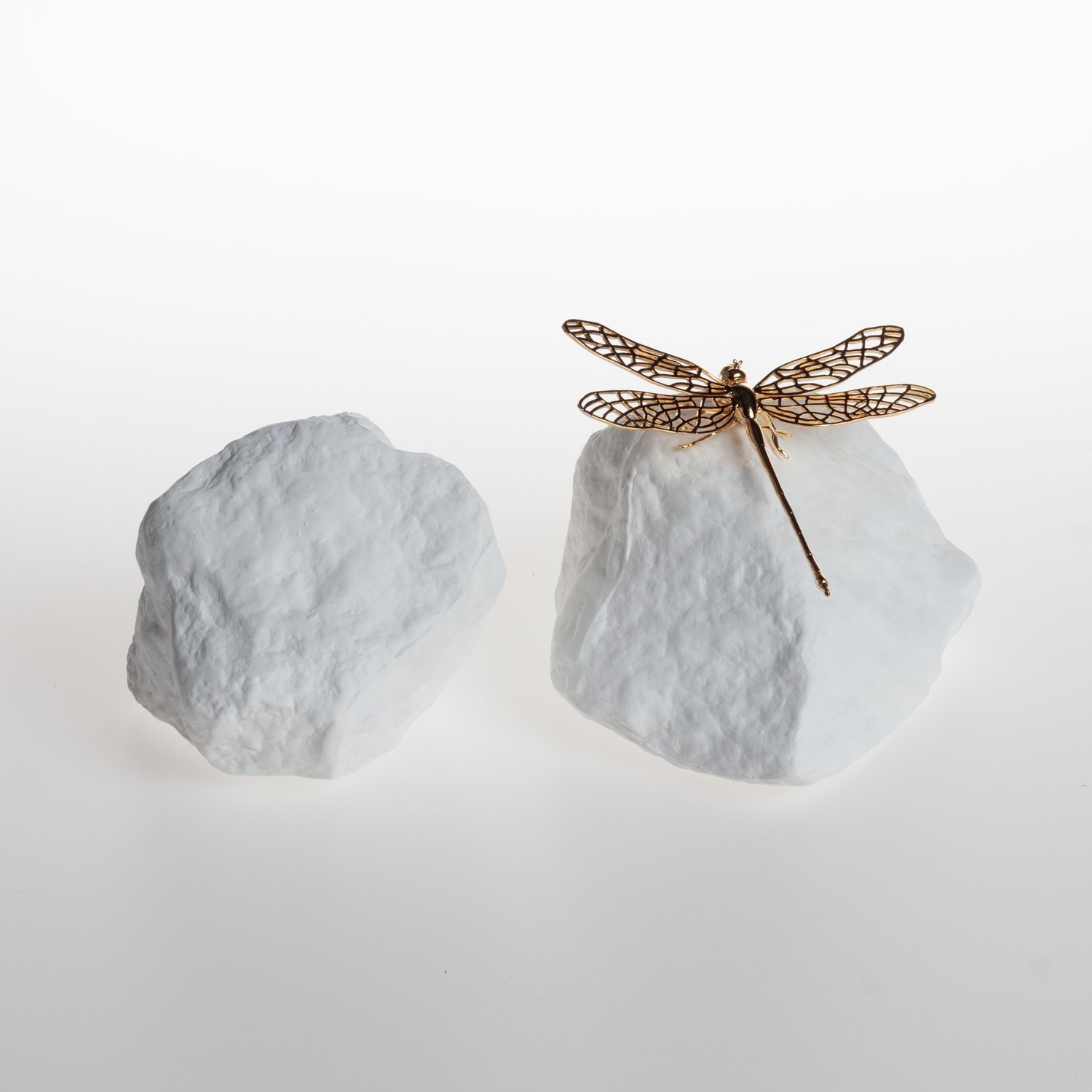 Escultura Pedra Dupla Libélula Sui Objeto Branco