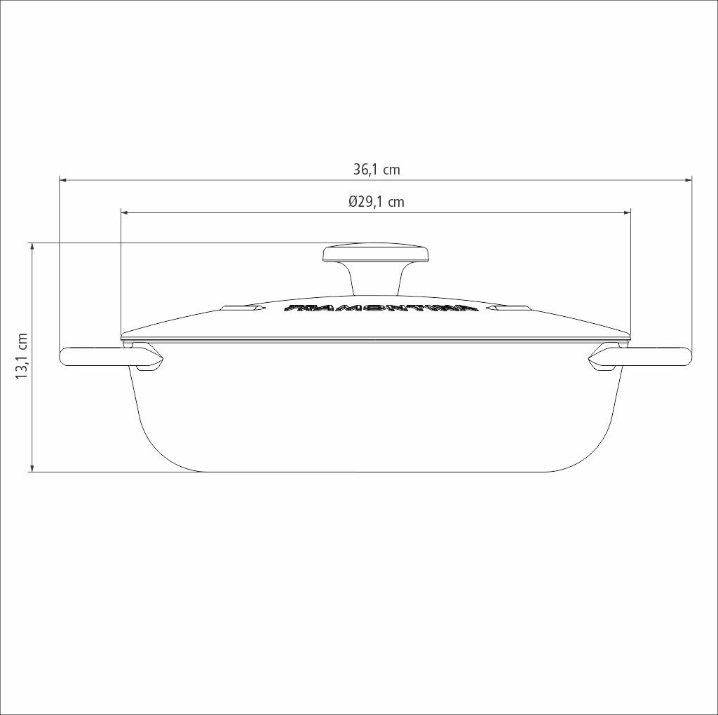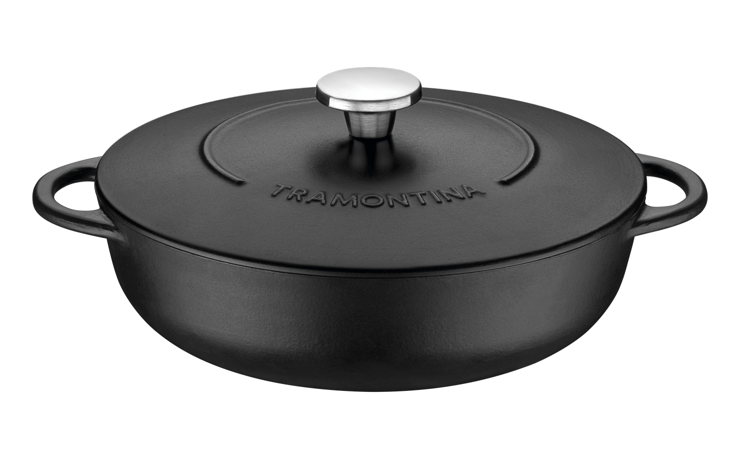 - Ferro fundido esmaltado com espessura de 3,2 mm que distribuir o calor de maneira rápida e uniforme;