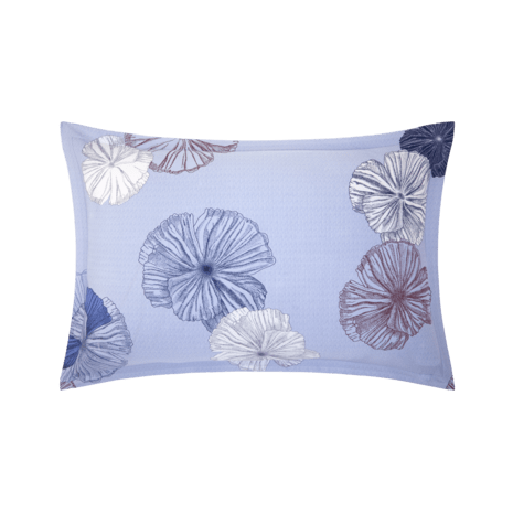 Um azul-celeste estival suave, é composto por uma miríade de pontilhados, tingido de azul escuro e granada. Uma composição fresca e contemporânea, atraindo todos os olhares.