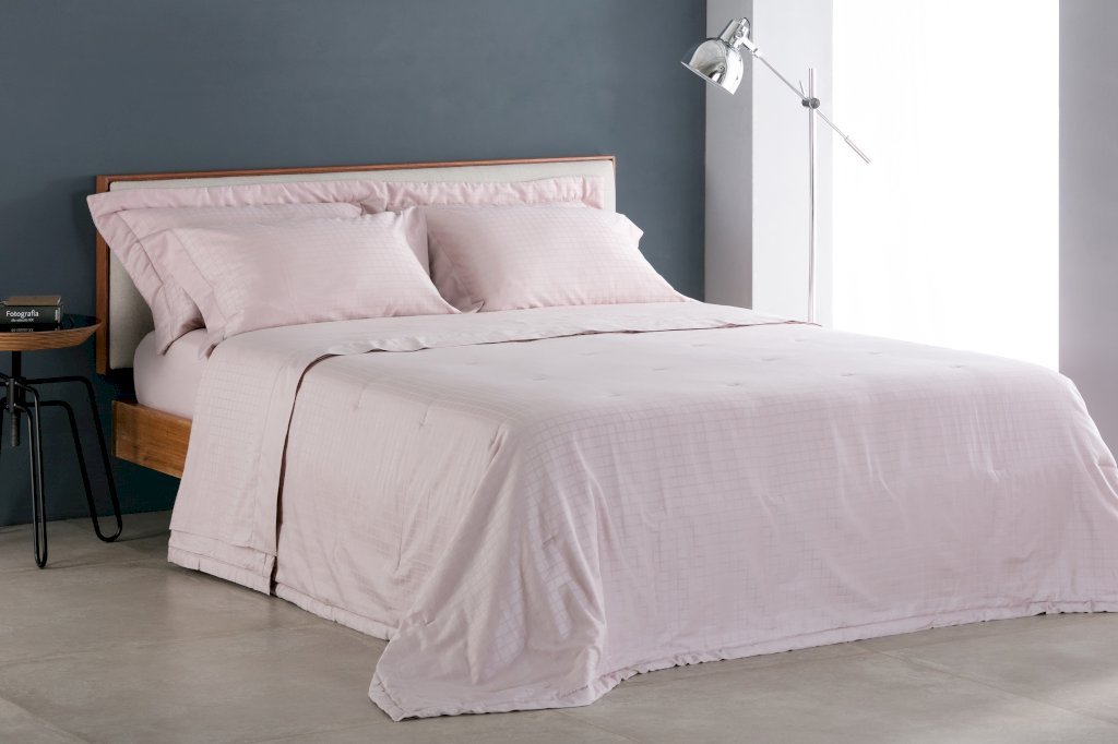 Fronha Damask Square 300 Fios Buddemeyer Rosa Pluma 50 x 70 cm