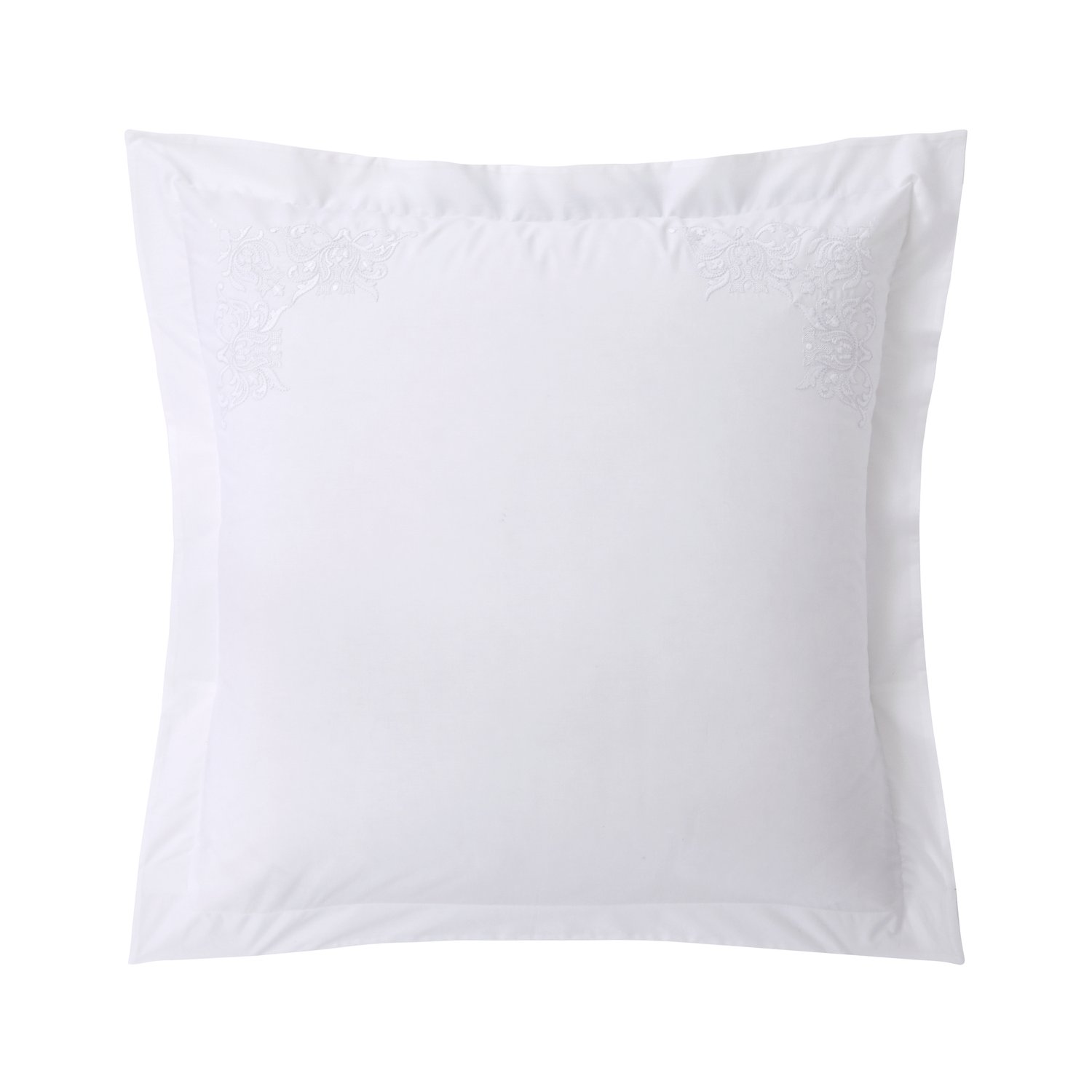 A linha Muse apresenta bordado elegante e atemporal, que combina a força do padrão arquitetônico, a sutileza da técnica openwork no tecido e o bordado tom sobre tom para acentuar o branco. As fronhas quadradas de 65 x 65cm são ideais para serem utilizadas atrás das fronhas tradicionais, para decorar e preencher mais a cama. Recomenda-se utilizar 2 fronhas para cama queen e 3 fronhas para cama super king.