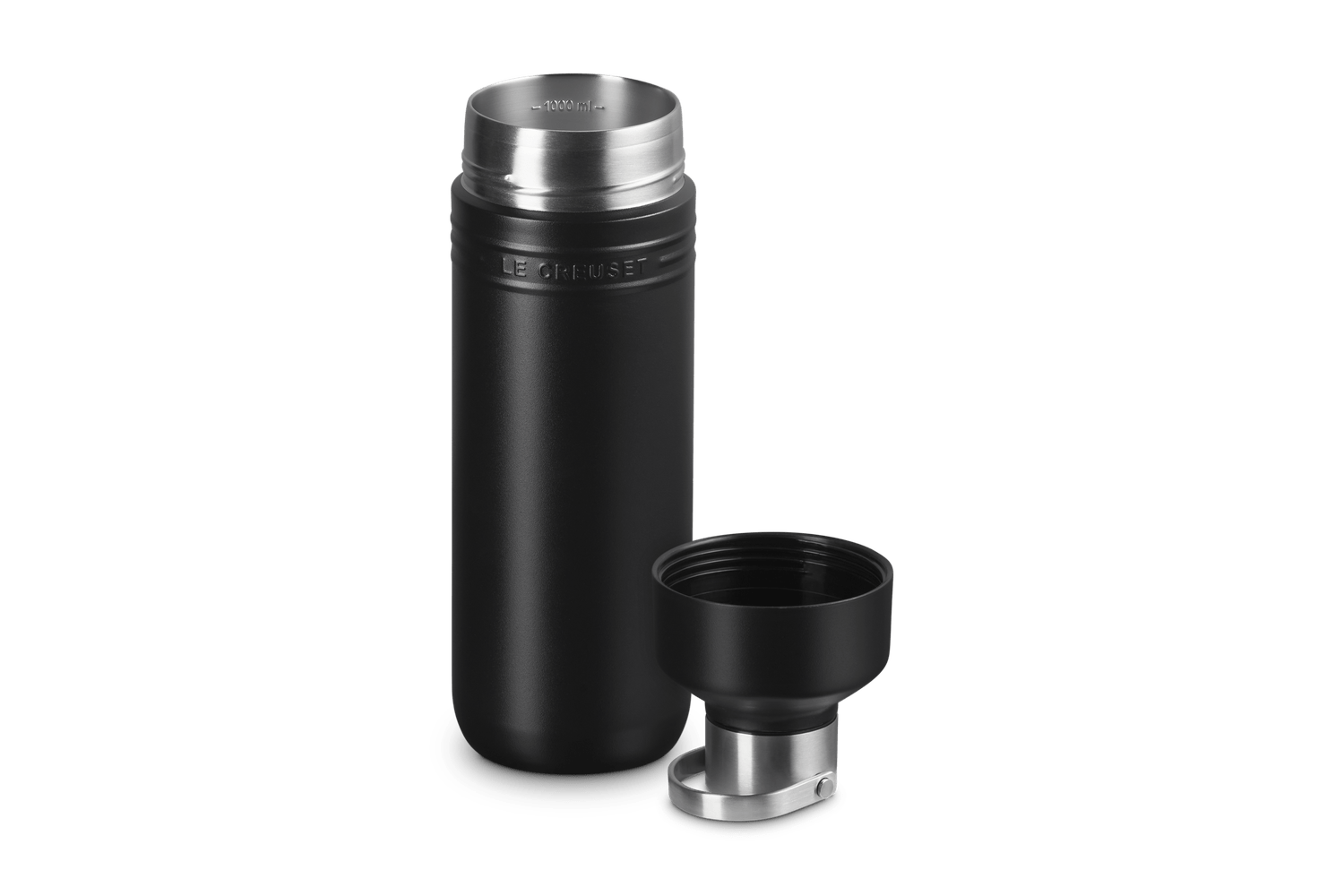 Informações do Produto Marca Le Creuset Linha On The Go Cor Matte Black Material Aço inoxidável Conteúdo 01 Garrafa Capacidade 1 Litro Medidas Ø 8,8cm - A 33,1cm Capacidade Térmica Mantém a bebida quente por até 12 horas e fria por até 24 horas