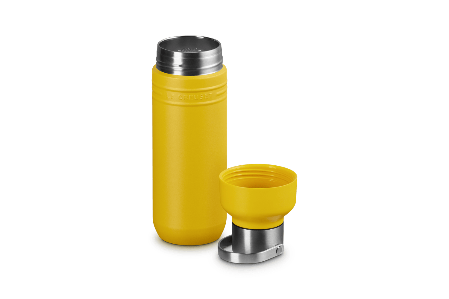 Informações do Produto Marca Le Creuset Linha On The Go Cor Néctar Material Aço inoxidável Conteúdo 01 Garrafa Capacidade 500ml Medidas Ø 7,3cm - A 28cm Capacidade Térmica Mantém a bebida quente por até 12 horas e fria por até 24 horas
