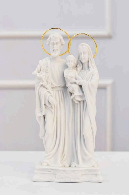 Informações Do Produto Dimensões: 22x9x5cm Cor: Branco Material: Pó de Mármore Peso: 565g Acompanha 02 auréolas com acabamento em ouro 24k Por ser uma peça artesanal, poderá apresentar variação de até 10% em relação ao tamanho padrão