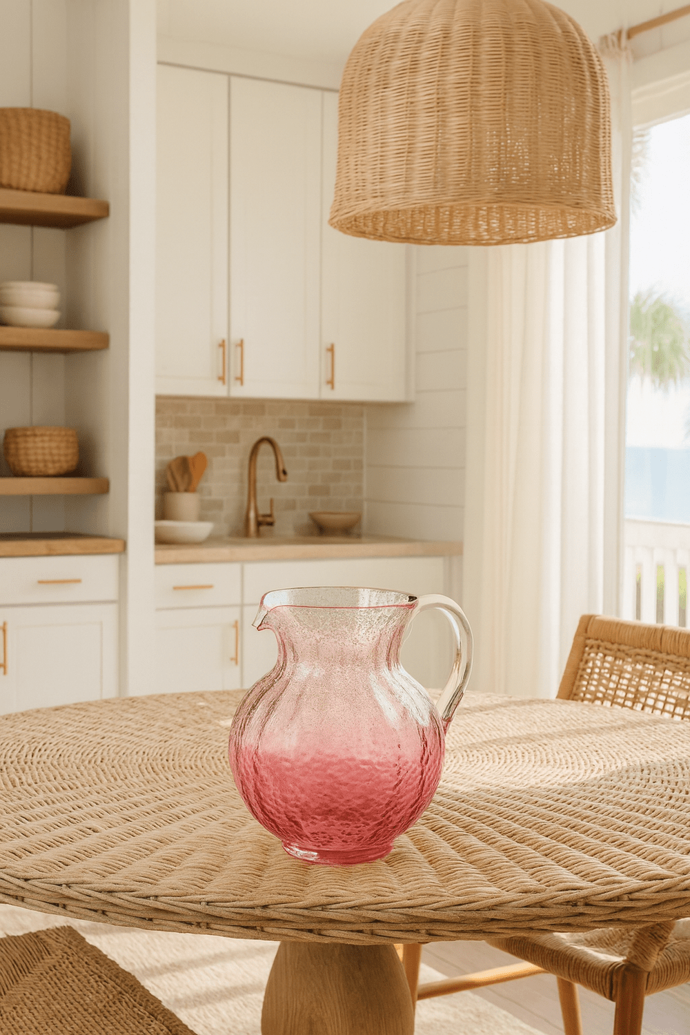 Possui capacidade generosa e alça ergonômica para fácil manuseio. Leve e durável, é perfeita para água, sucos, chás gelados ou coquetéis, além de ser fácil de limpar e ideal para ambientes internos e externos.