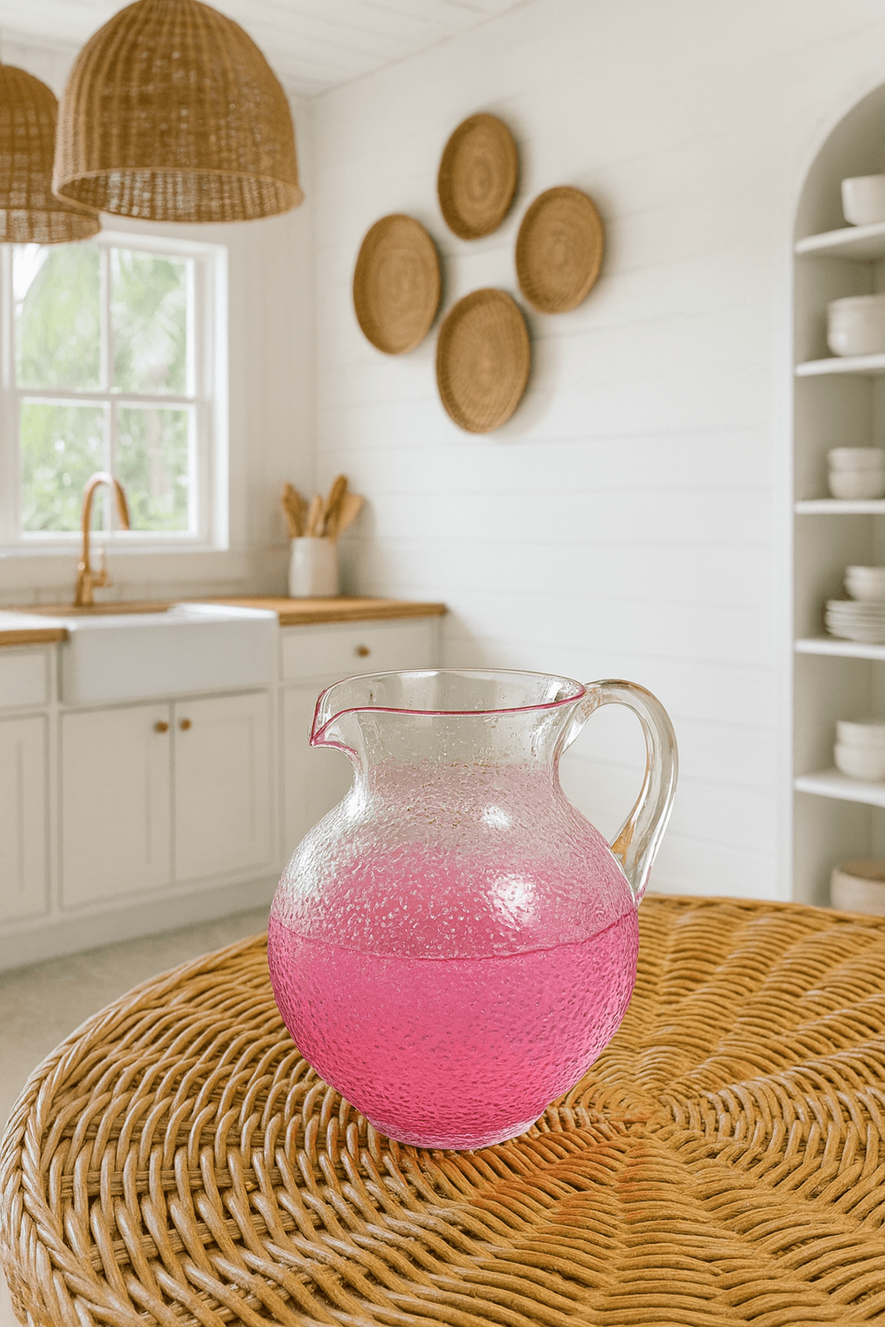 Possui capacidade generosa e alça ergonômica para fácil manuseio. Leve e durável, é perfeita para água, sucos, chás gelados ou coquetéis, além de ser fácil de limpar e ideal para ambientes internos e externos.