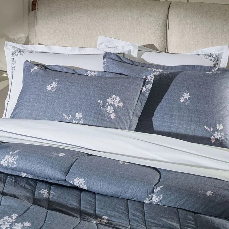 O jogo de fronhas Helen é a escolha perfeita para complementar a cama com delicadeza e estilo. Com estampa floral lilás sobre fundo azul texturizado, as duas peças trazem o charme romântico da linha em uma proposta prática e versátil. Coordenam perfeitamente com o jogo Helen de 3 e de 4 peças, ou mesmo outros jogos de cama lisos em tons de azul e cinza.