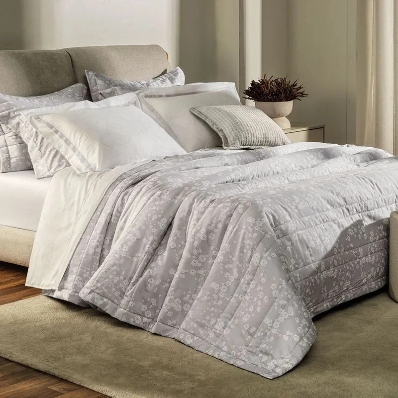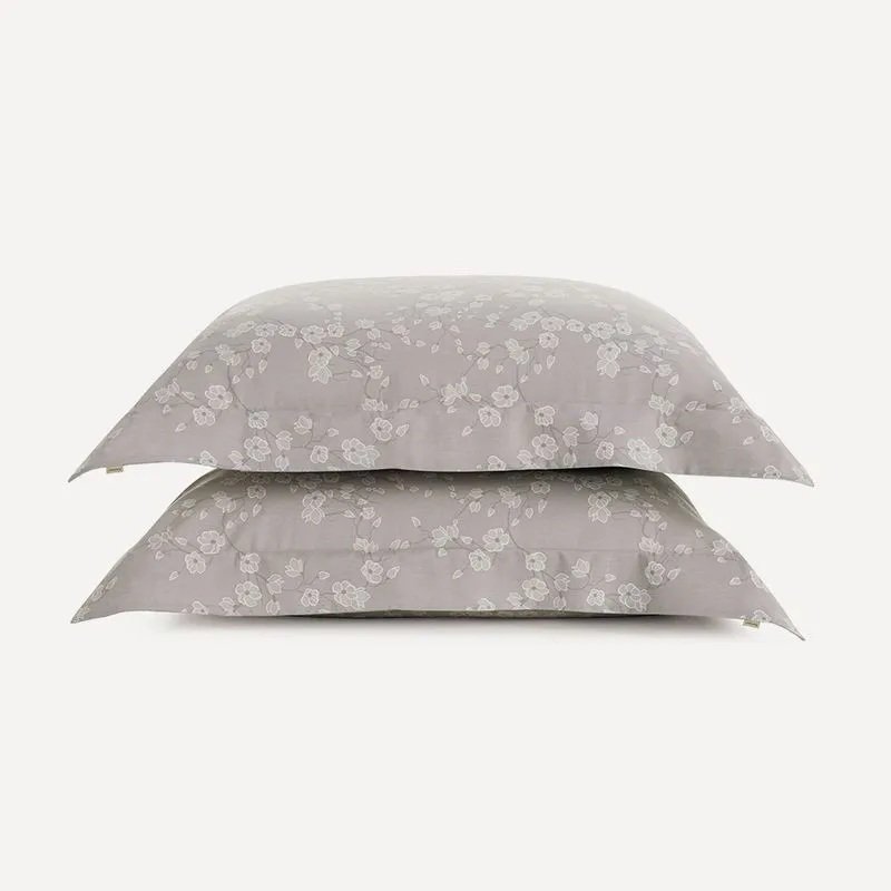 Com fundo cinza claro e estampa floral branca, o kit de fronhas Melania é o complemento ideal para camas postas em tons de off white, prata, titânio ou o que sua criatividade e personalidade desejarem. O kit harmoniza com o jogo de cama Melania, contrapondo a combinação de branco e cinza com estampa em cores invertidas. Feito em fios penteados 100% algodão egípcio, com toque acetinado e cintilância natural.