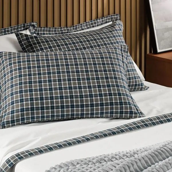 Informações Do Produto Quantidade de Peças: 2 Peças Tecido: Percal de Algodão Composição: 100% Algodão, 200 Fios Estilo: Clássico Medida: 50x70cm Cor: Azul Cor Comercial: Flanela Tipo: Estampado Itens Inclusos: 2 Fronhas Acabamento: Kit Fronhas em flanela com 3 abas de 4cm e etiqueta de marca aplicada, Mais encorpado e macio, Altamente respirável, Antipilling e Hipoalergênico Instruções de Lavagem: Lavação a 60ºC, Proibido alvejar, Secar em tambor com temperatura máxima de 60ºC, Ferro de passar com temperatura máxima de 150ºC, Proibido lavar a seco Coleção: Instantes