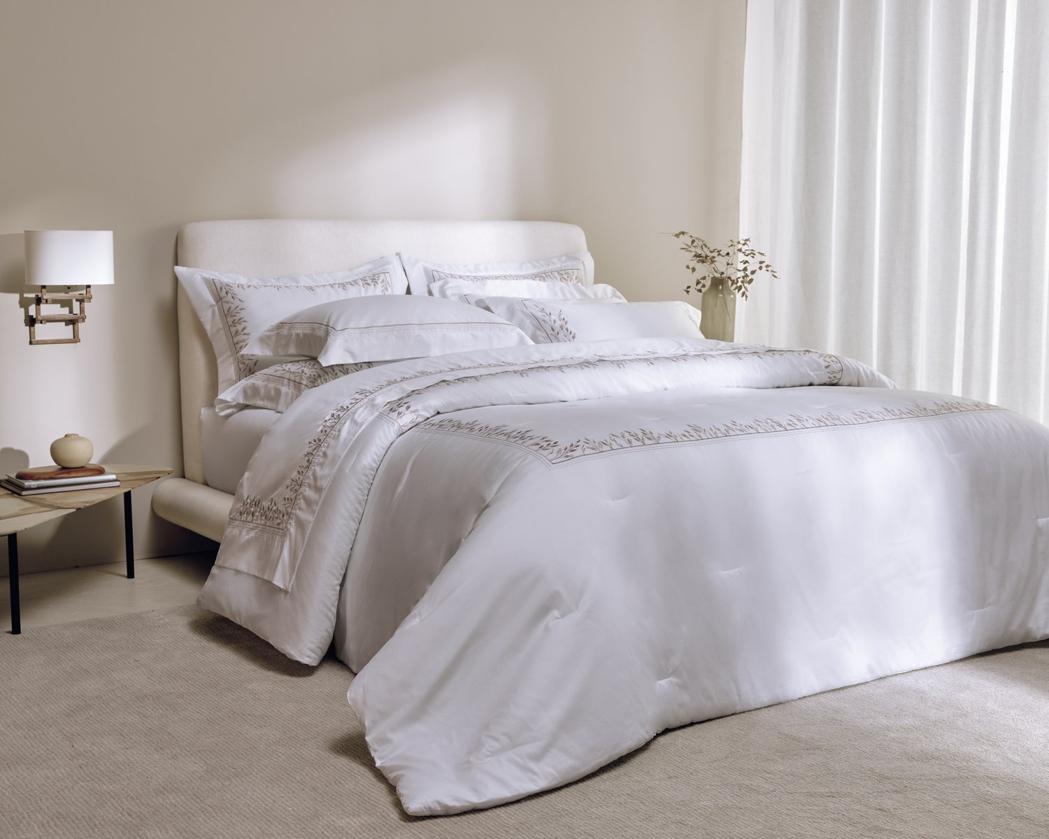 Com inspiração nos bordados das indumentárias litúrgicas, o jogo de fronhas Flora traduz sofisticação e delicadeza artesanal. Confeccionadas em cetim 300 fios de puro Algodão Egípcio, suas fronhas garantem um toque sedoso e conforto absoluto. As dimensões de 50cm x 90cm são perfeitas para um ajuste impecável, enquanto as 4 abas com bordado localizado criam uma moldura elegante para compor sua cama com exclusividade. Na tonalidade branca, as flores bordadas adicionam um charme atemporal, realçando a serenidade do ambiente. Um verdadeiro convite ao descanso.