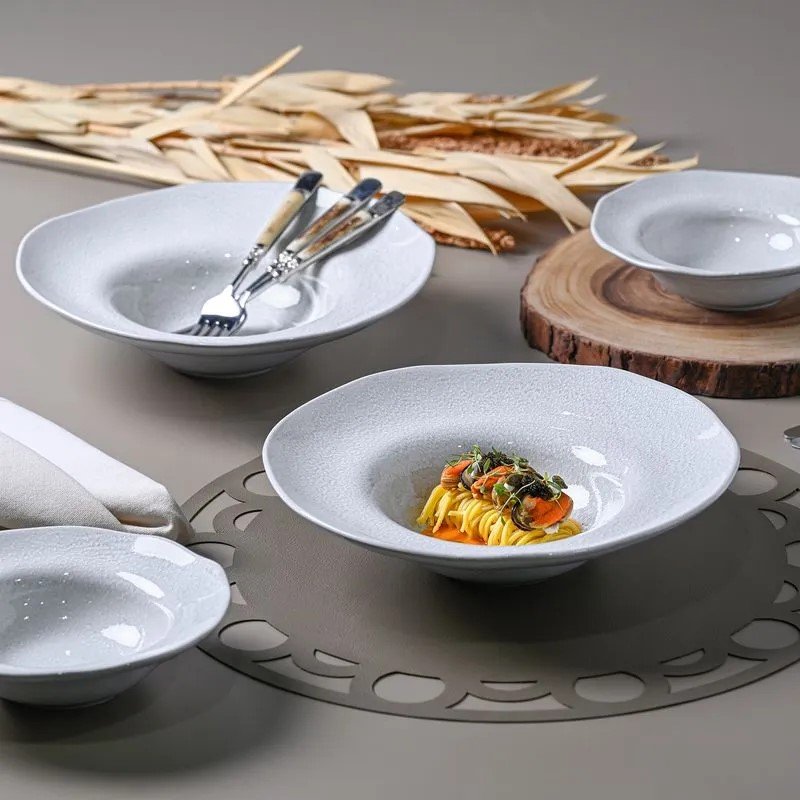 O Jogo com 04 Pratos de Massa Orgânico Luz da Porto Brasil é a escolha perfeita para compor uma mesa elegante com um toque contemporâneo e artesanal. Produzidos em stoneware, os pratos oferecem excelente resistência e durabilidade, sendo ideais para o uso diário ou ocasiões especiais. Com design orgânico, apresentam bordas levemente irregulares que valorizam a estética natural e exclusiva de cada peça. Perfeitos para servir massas, risotos e outros pratos, possuem formato funcional aliado a um visual marcante, que transforma qualquer refeição em uma experiência mais especial.