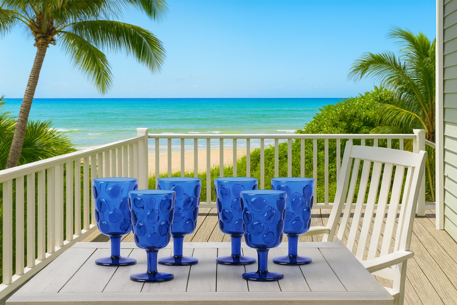 Informações do Produto Material Vidro Cor Azul Composição 06 Copos Tamanho 260 ml Dimensão (cm) 8.2CM X 8.2CM X 10.5C