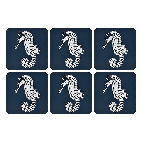 Jogo 06 Porta Copos Cavalo Marinho The Home Decorações Azul