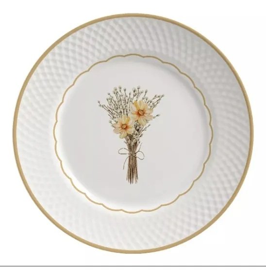 Marca Alleanza Material Ceramica Feldspática Cor Branco e Amarelo Conteúdo 06 Pratos Rasos Altura 2 cm Diâmetro 29 cm